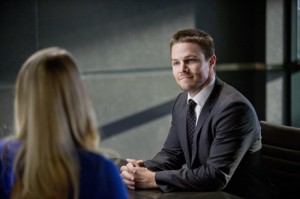 Arrow — « City of Heroes » — Image AR201a_0014b – Pictured (L-R): Emily Bett Rickards as Felicity Smoak and Stephen Amell as Oliver Queen — Photo: Cate Cameron/The CW — © 2013 The CW Network. All Rights Reserved