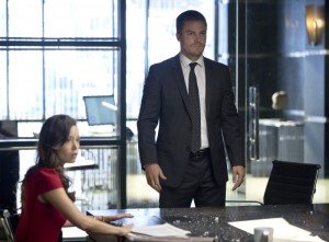 Arrow — « City of Heroes » — Image AR201a_0125b — Pictured (L-R): Isabel Rochev as Summer Glau and Stephen Amell as Oliver Queen — Photo: Cate Cameron/The CW — © 2013 The CW Network. All Rights Reserved